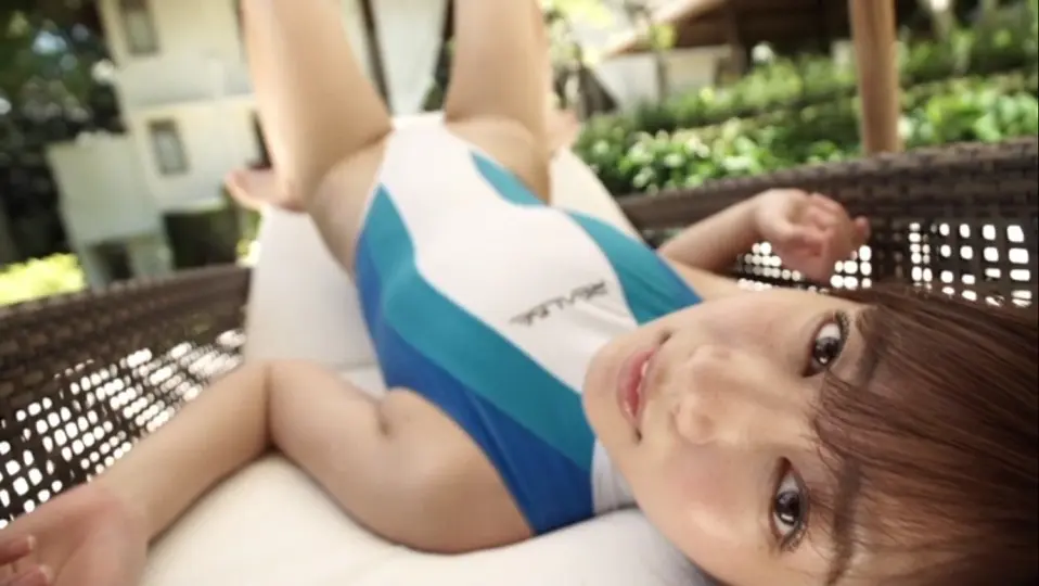 人気急上昇中! さんとエッチな新婚旅行がテーマのイメージビデオ「恋愛組曲」から、白競泳水着で接写されるチャプターをどうぞ