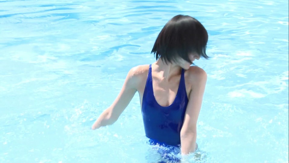 少女の可憐さと大人の妖美さを併せ持つ保田真愛さんのイメージビデオ「MY!妹!!真愛!!!」から、超ハイレグ競泳水着でプール遊泳するチャプター