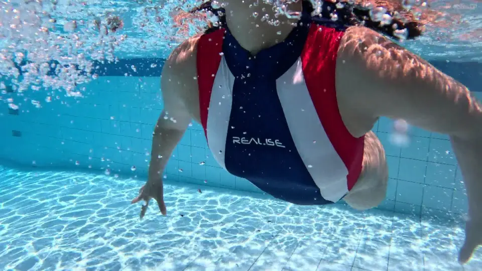 新人グラビアアイドルさんのイメージDVDデビュー作「ひめかのヒメゴト」から、トリコロール競泳水着で遊泳するチャプターをどうぞ